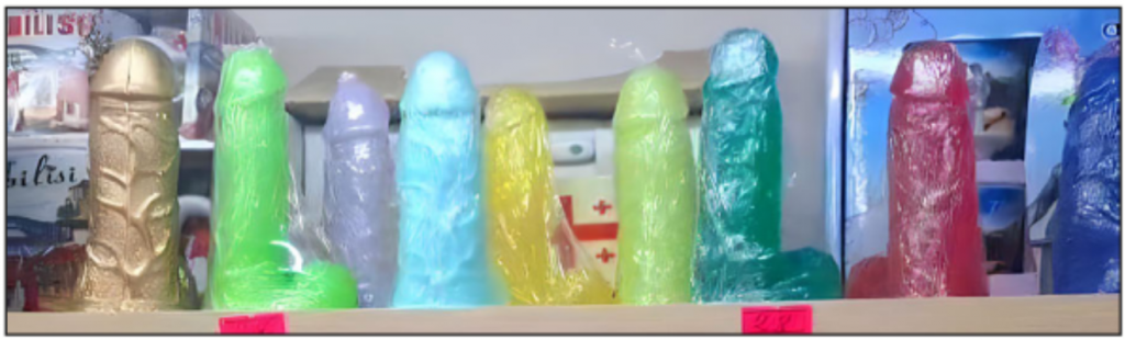 Im Februar 2024 betraten zwei Aktivistinnen einer rechtsextremen Bewegung einen Souvenirladen in der Altstadt von Tiflis. Mit laufender Kamera filmten sie ein Regal, auf dem phallusförmige Kerzen neben Kreuzen, Nationalflaggen und traditionellen georgischen Trachten ausgestellt waren.